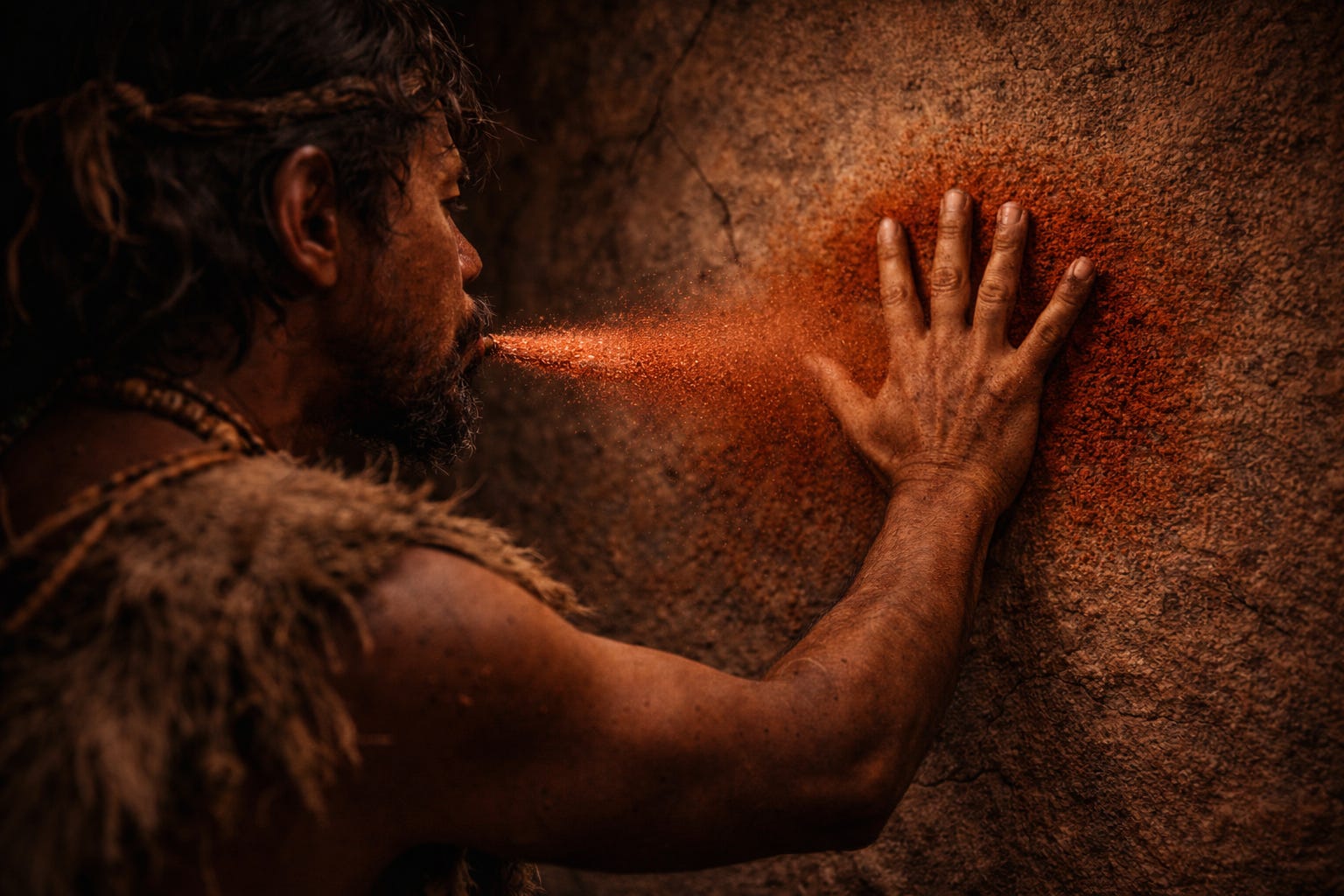 The saliva detail is what gets me. 67,000 years ago someone figured out that mixing spit with ochre was the right consistency for spray painting, which means they were iterating on technique not just slapping pigment randomly. That blurr between survival documentation and aesthetic choice feels super modern actually, like how dataviz people argue weather their charts are functional or beautiful.
